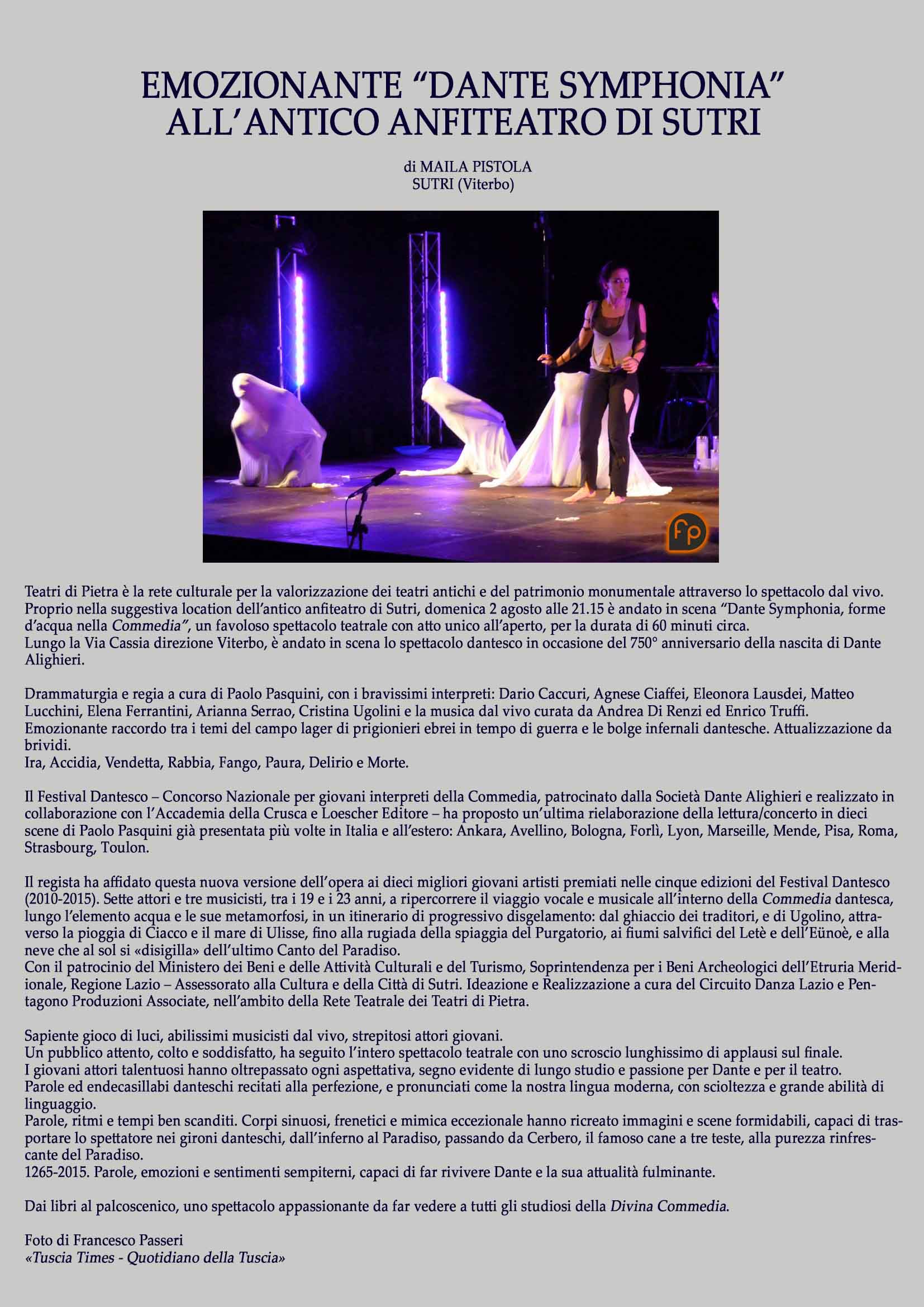 Lo spettacolo è stato poi replicato nella splendida cornice dell'Anfiteatro di Sutri per il «Festival Teatri di Pietra».